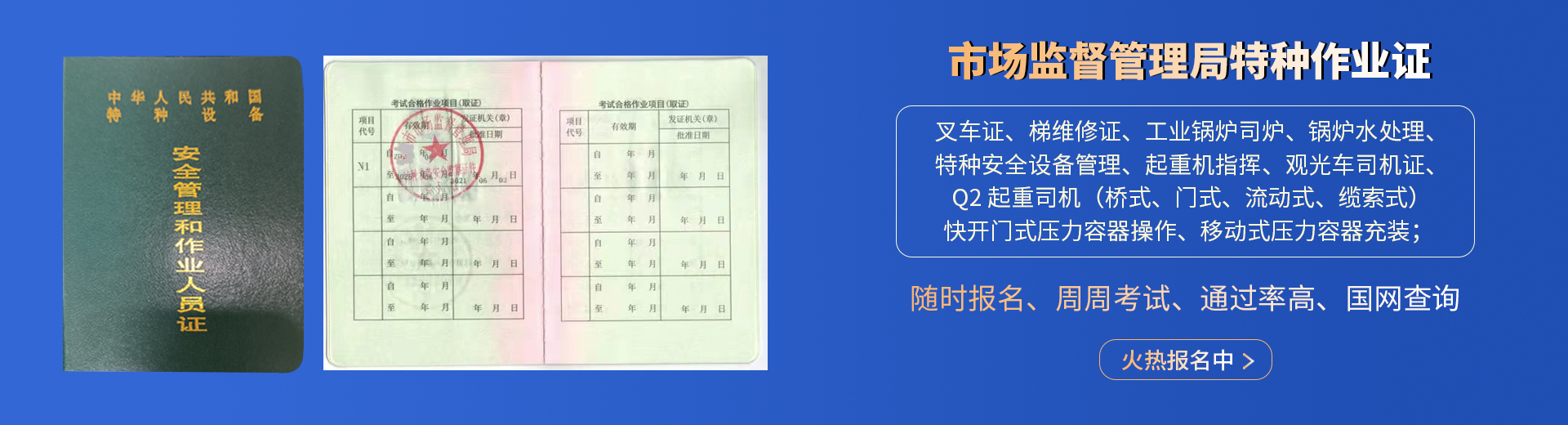 叉車(chē)證,電梯維修證,起重司機(jī)-橋式-門(mén)式-流動(dòng)式,起重指揮,壓力容器操作,鍋爐司爐,水處理,特種設(shè)備管理,觀光車(chē);